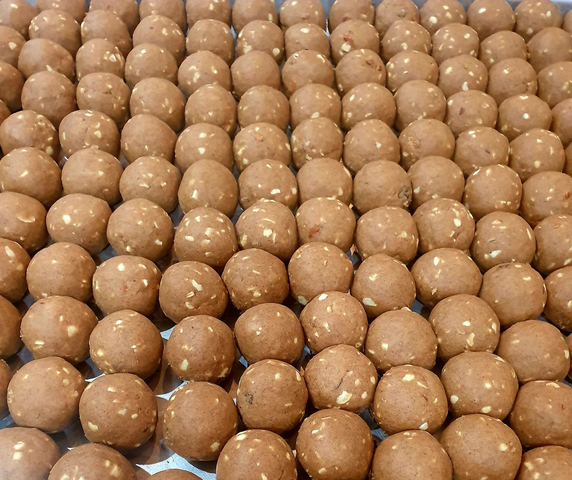 - They are made with gond(edible gum), various nuts along with wholewheat flour & pure desi ghee. We put extra edible gum in this one as compared to our other panjeeri laddoos.